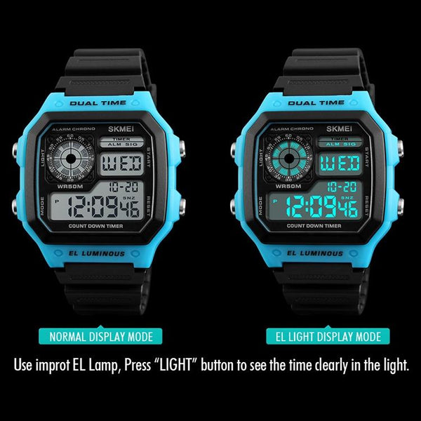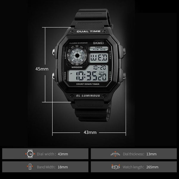 5. Function: dual time display, stopwatch timing, luminous, display date, timed alarm, display week, 12/24 hour system, hourly hour, countdown