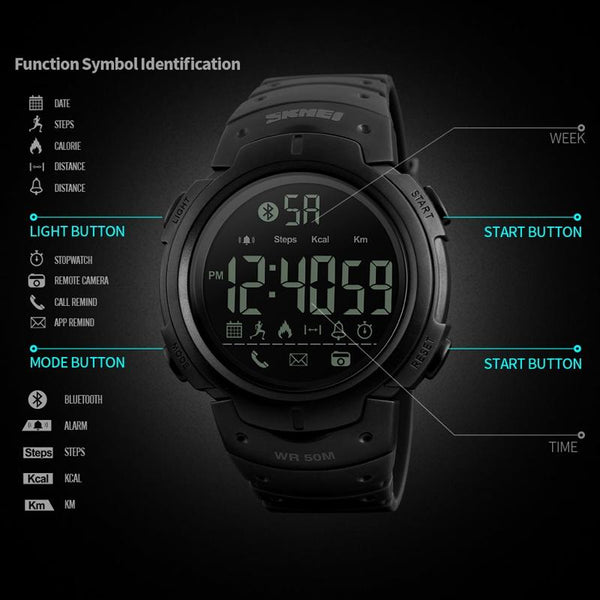 SKMEI 1301 Multifunction 50m Waterproof Sports Bluetooth Smart Watch, Compatible with Android & iOS System(Black)
