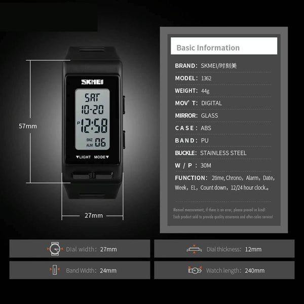 SKMEI 1362 Sports Electronic Watch Fashion Waterproof Countdown Children LED Watch(Black)