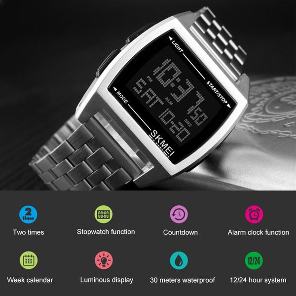 SKMEI 1368 Multifunctional Men Outdoor Sports Noctilucent Waterproof Digital Watch(Silver)