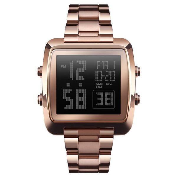 SKMEI 1369 Retro Waterproof Gold Watch Men Steel Belt Luminous Square Watch(Rose Gold)