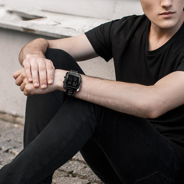 SKMEI 1369 Retro Waterproof Gold Watch Men Steel Belt Luminous Square Watch(Silver)
