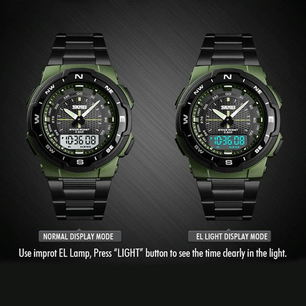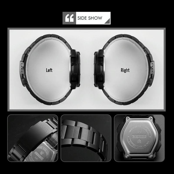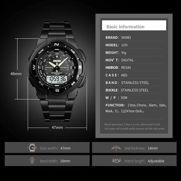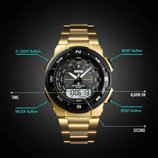 SKMEI 1370 Multifunctional Men Outdoor Sports Noctilucent Waterproof Stainless Steel Digital Wrist Watch (Rose Gold)