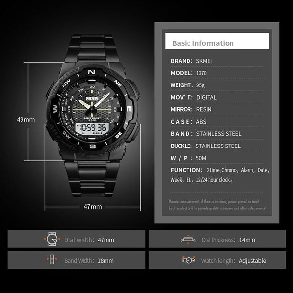 SKMEI 1370 Multifunctional Men Outdoor Sports Noctilucent Waterproof Stainless Steel Digital Wrist Watch (Silver)