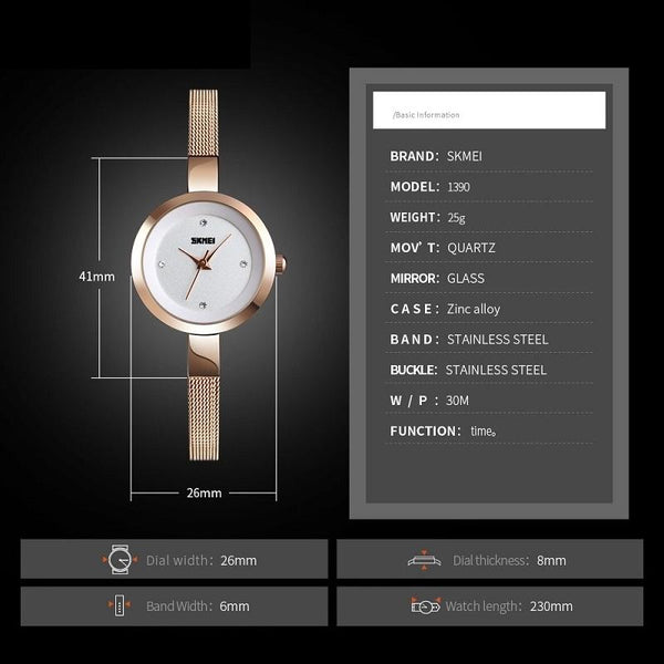 SKMEI 1390 Ladies Business Casual Watch Steel Band Lightweight Quartz Watch(Rose Gold)