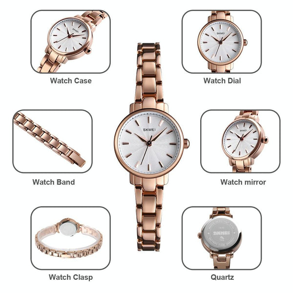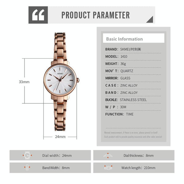 Skmei 1410 Lady Quartz Watch European and American Fashion Watch Business Leisure Steel Belt Lady Watch(Rose Gold)