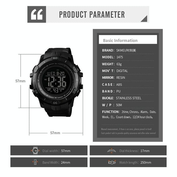 SKMEI 1475 Men Multifunctional Sports Watch Students Outdoor Waterproof Digital Watch(Golden)