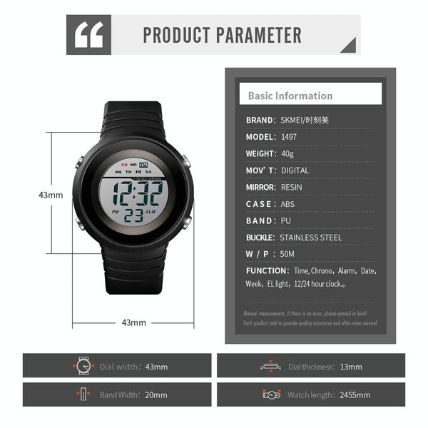 SKMEI 1497 Fashion Simple Backlight Single Display Electronic Watch Timing Alarm Watch(Black )