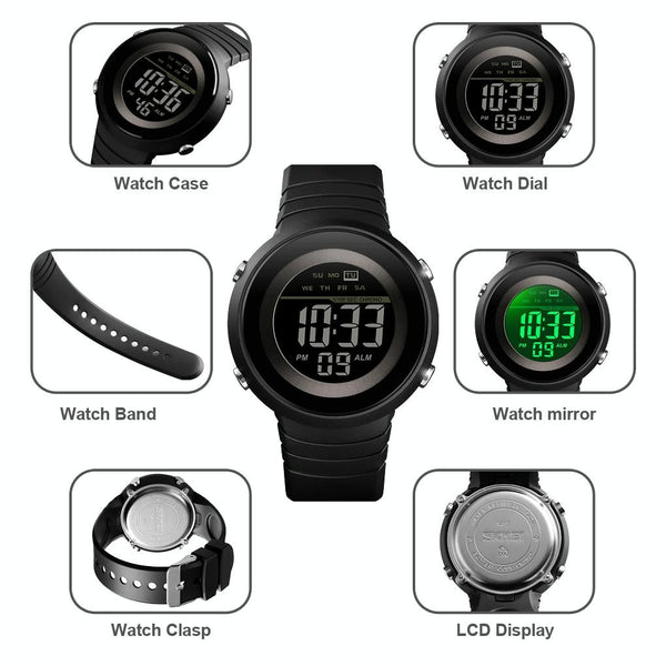 SKMEI 1497 Fashion Simple Backlight Single Display Electronic Watch Timing Alarm Watch(Blue White)