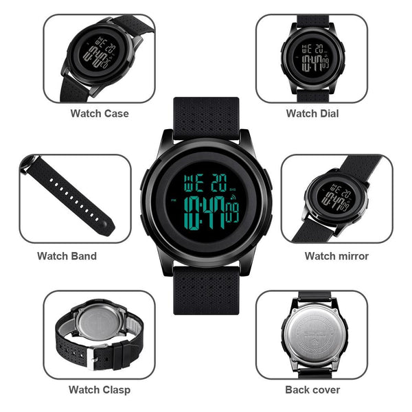 SKMEI 1502 Multifunctional Men 30M Waterproof Luminous Sports Digital Wrist Watch(Black+Black)