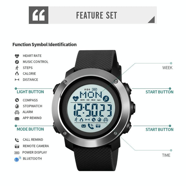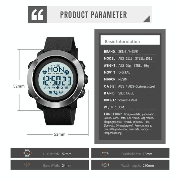 SKMEI 1511 Simple Bluetooth Men Smart Waterproof Compass Adult Smart Watch(Steel Shell Army Green)