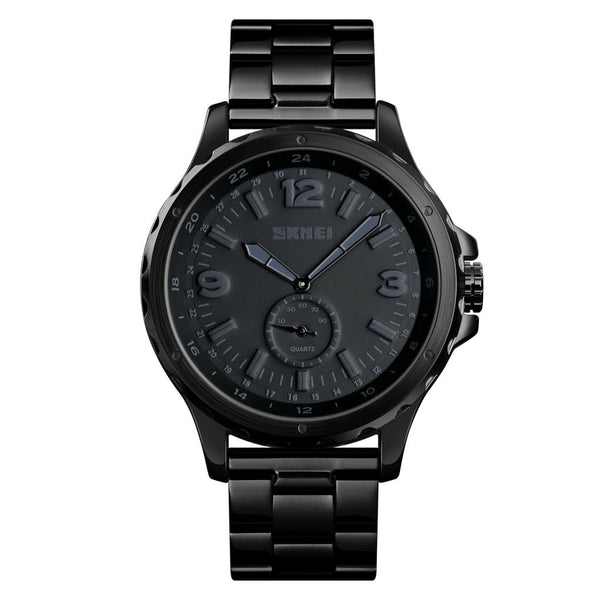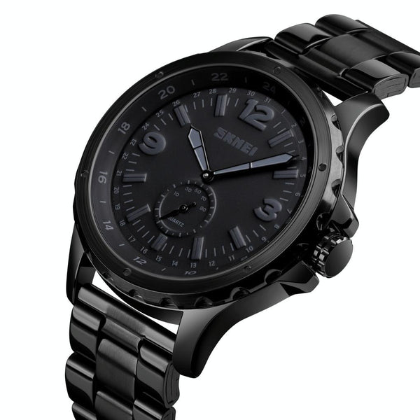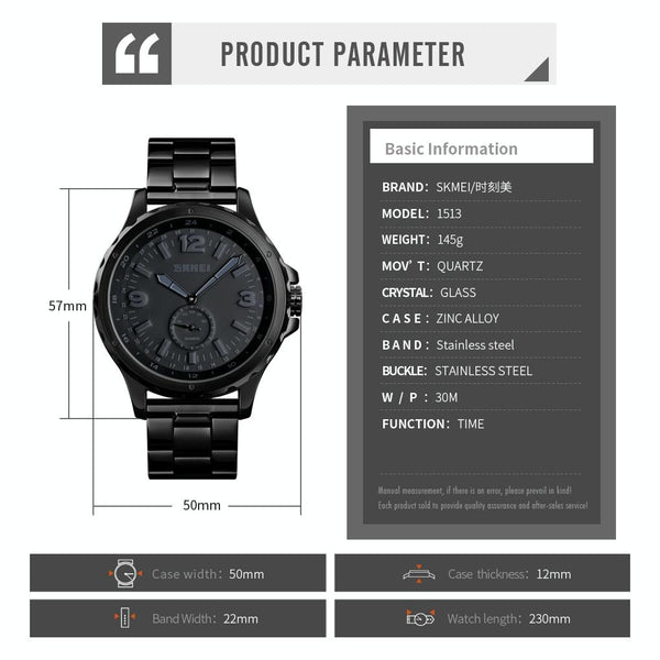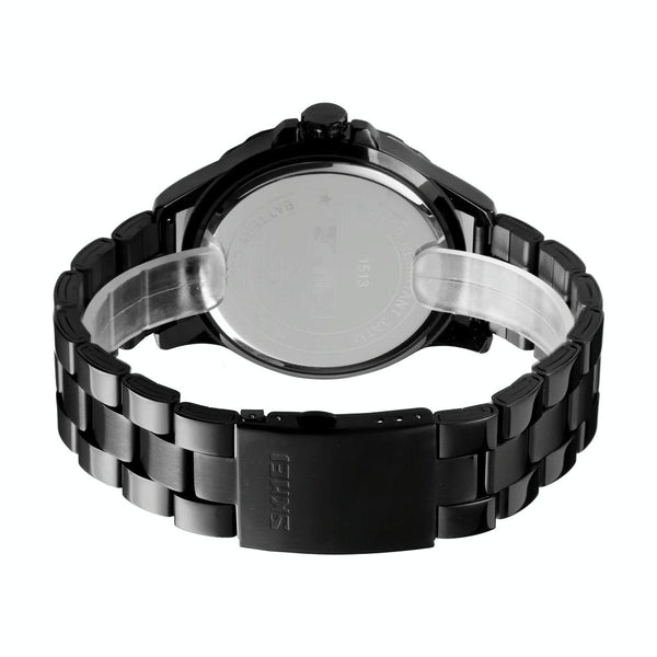 Skmei 1513 Fashion Trendy Steel Band Quartz Watch Mens Waterproof Leisure Watch(Black)