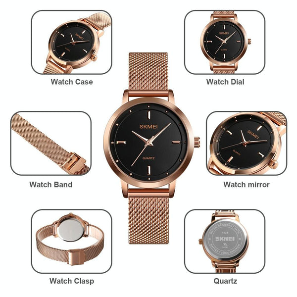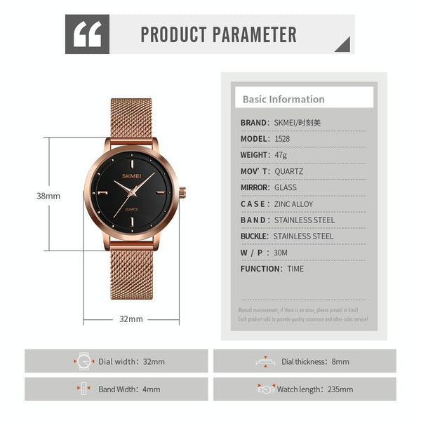 SKMEI 1528 Simple Fashion Lady Watch Casual Netting Scale(Black)