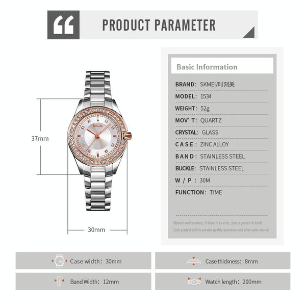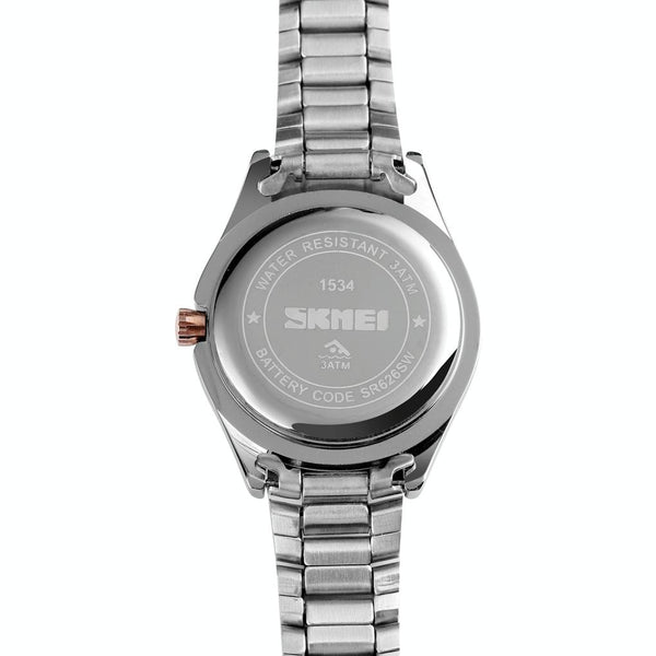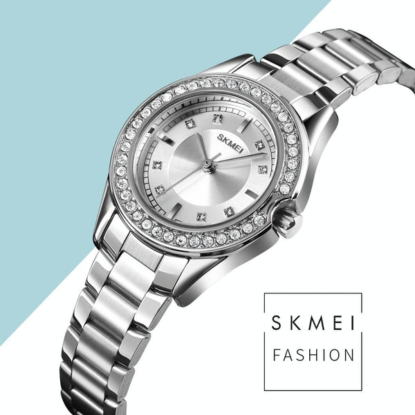 SKMEI 1534 elegant waterproof quartz steel band watch with diamond inlay(SilverGold)