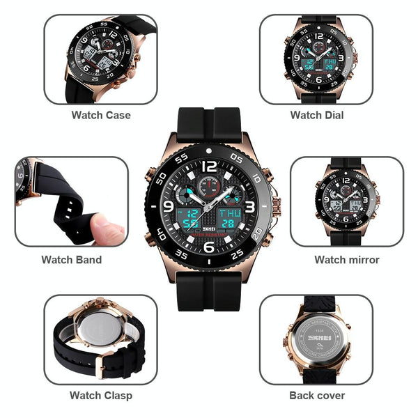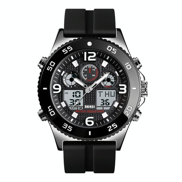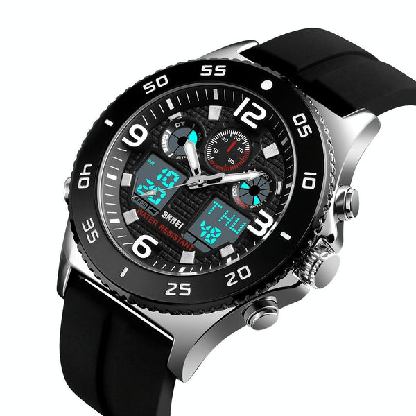 SKMEI 1538 Multi-Function Time Large Dial Steel Belt MenCasual Sports Electronic Watch(Silver-Silicone Belt)