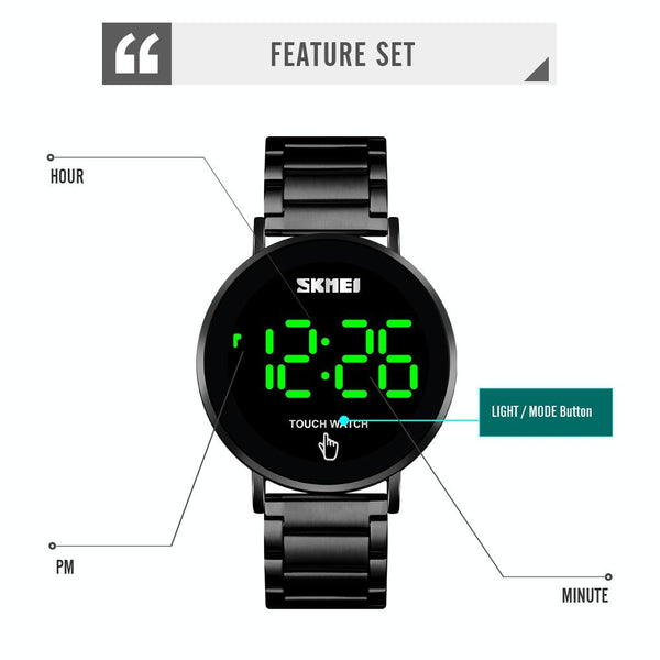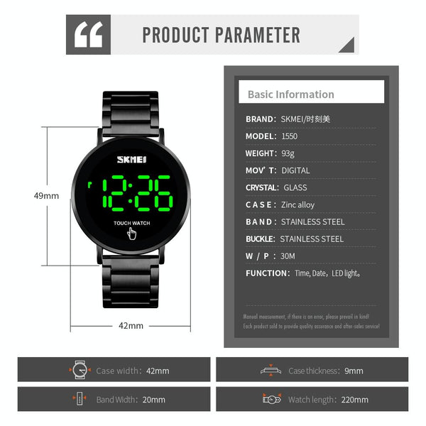 SKMEI 1550 Simple and Stylish LED Touch Screen MenWatch Waterproof Stainless Steel With Electronic Watch(Black)