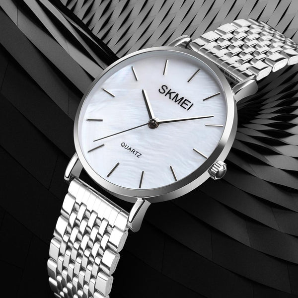 Skmei 1567 Light And Thin Leisure Simple 30m Waterproof Shell Dial Women Steel Band Quartz Watch(Silvery)