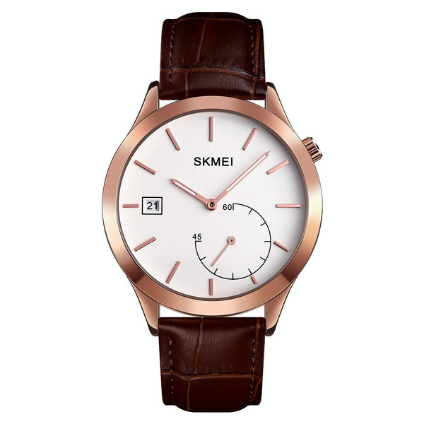 SKMEI 1581 Creative Fashion Men Watch Simple Casual Outdoor Sports Waterproof Two-Pin Quartz Watch(Rose Gold Coffee)