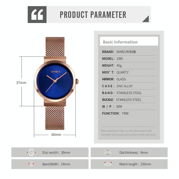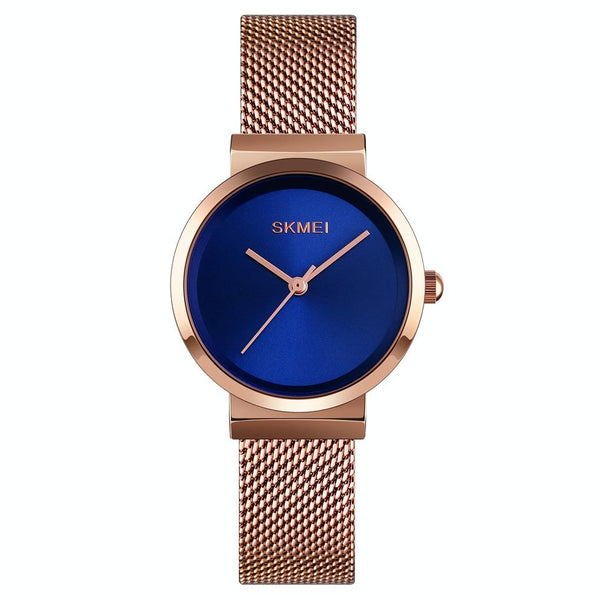 Skmei 1595 Fashion Elegant Scale Free Steel Mesh Belt Women's Watch Waterproof Business Student Quartz Watch Female(Rose Gold Blue)