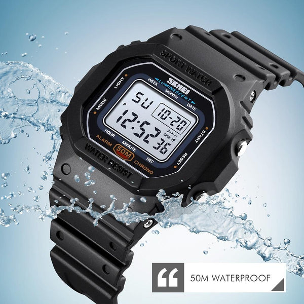 Skmei 1608 Multi-Function Student Electronic Watch Waterproof Timing Silicone Sports Watch(Black)