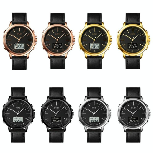 SKMEI 1652 Dual Movement Sports Leather Alloy Male Watch, Color: Gold Shell White Machine
