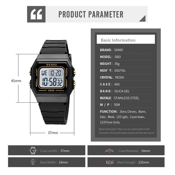 SKMEI 1683 Dual Time LED Digital Display Luminous Silicone Strap Electronic Watch(Black)