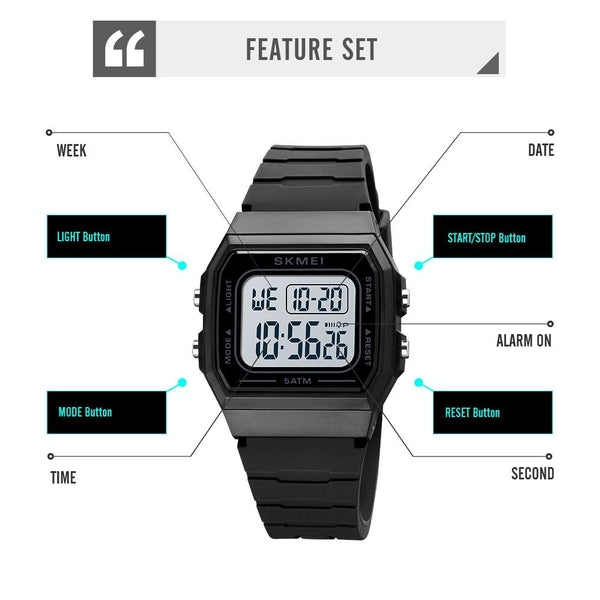8. Functions: dual time, stopwatch timing, luminous, date display, timing alarm, display day of the week, hourly hour, 12/24 hour system, countdown