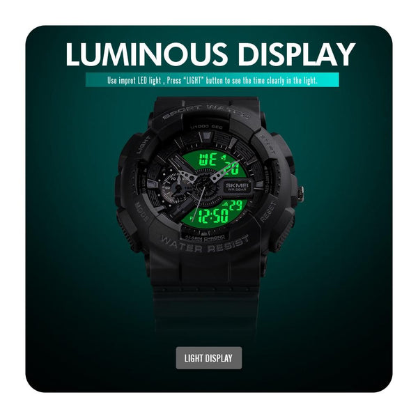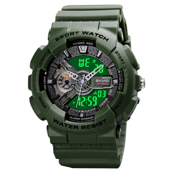 SKMEI 1688 LED Dual Time Digital Display + Pointer Luminous Sports Electronic Watch(Army Green)