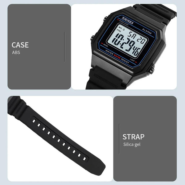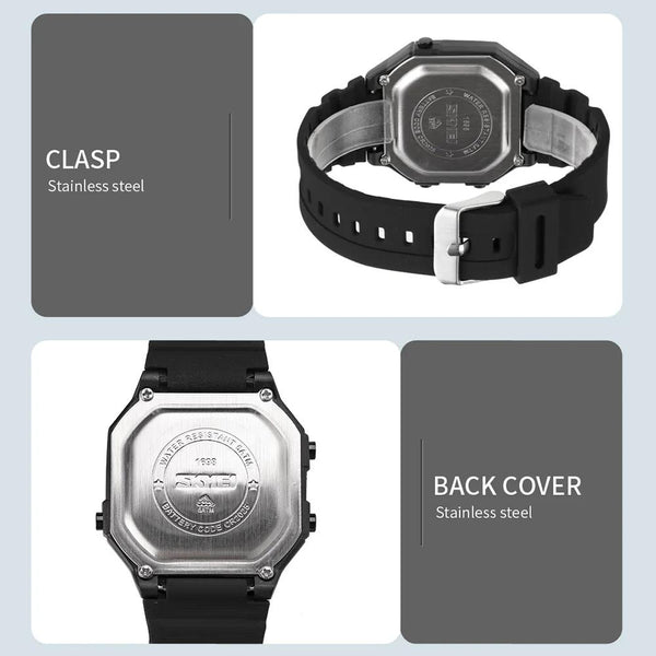 SKMEI 1698 50m Waterproof Multifunctional Sports Square Pin Buckle Luminous Digital Watch(Black Black)