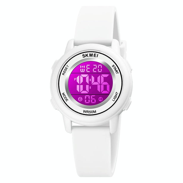 SKMEI 1721 Triplicate Round Dial LED Digital Display Luminous Silicone Strap Electronic Watch(White)