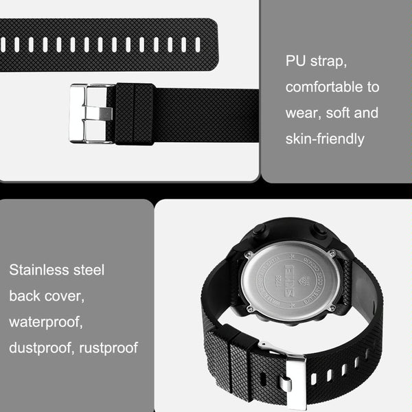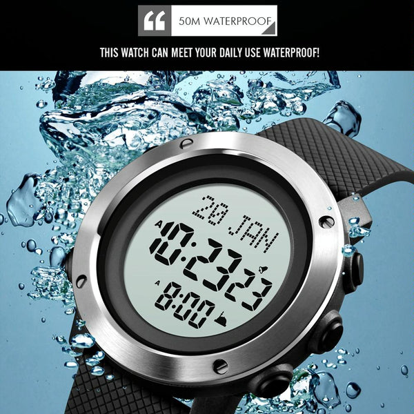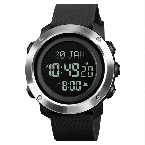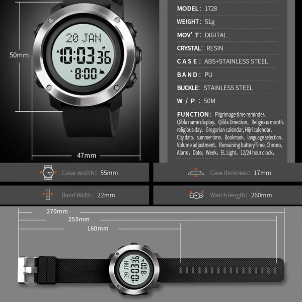 SKMEI 1728 Muslim Worships Watch Multifunctional Reminder Prayer Direction Compatriots Watch, Style:Steel Circle Edition(Black Black Machine)