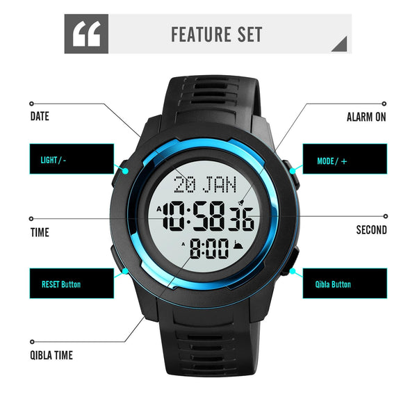 SKMEI 1729 Qibla Calendar Timing Multifunctional LED Digital Display Luminous Electronic Watch(Black)