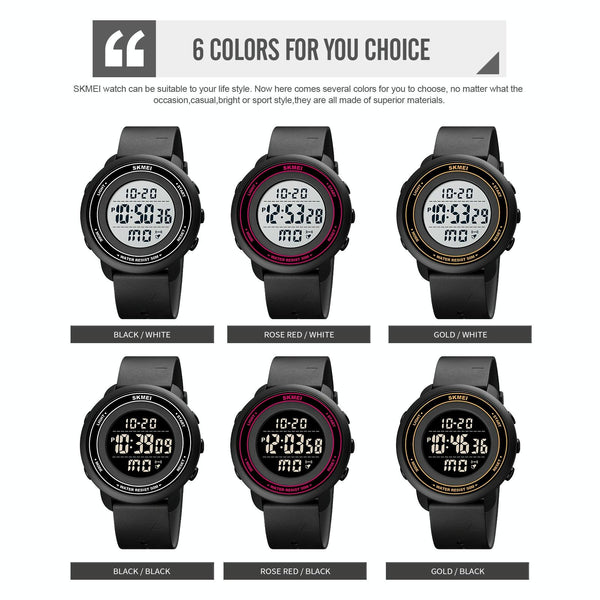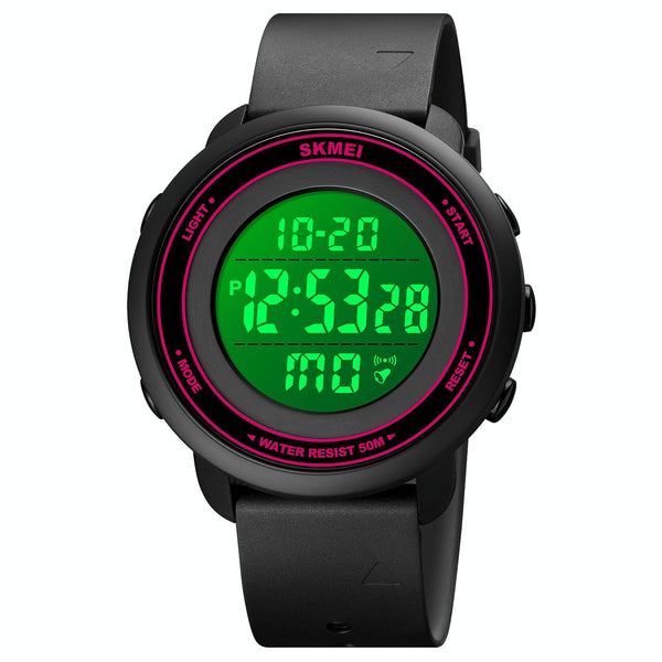 SKMEI 1736 Triplicate Round Dial Timing LED Digital Display Luminous Electronic Watch(Rose Red and White)