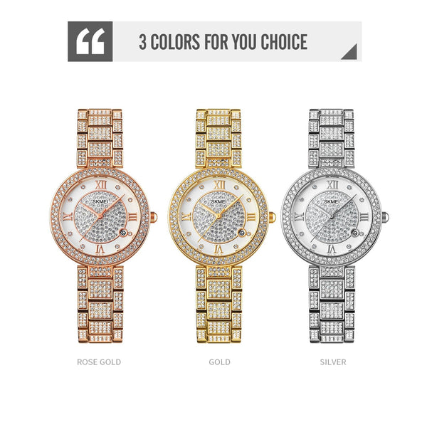 SKMEI 1739 Diamond Roman Numerals Round Dial Quartz Watch for Ladies(Silver)