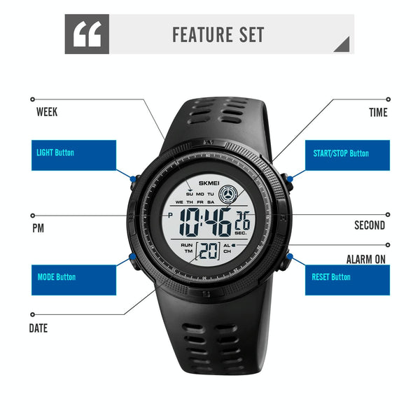 8. Functions: dual time, stopwatch timing, luminous, date display, timing alarm, display day of the week, hourly hour, 12/24 hour system, countdown