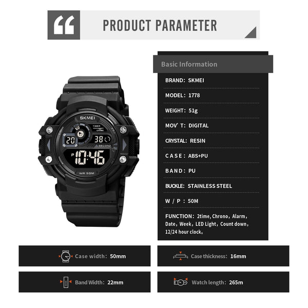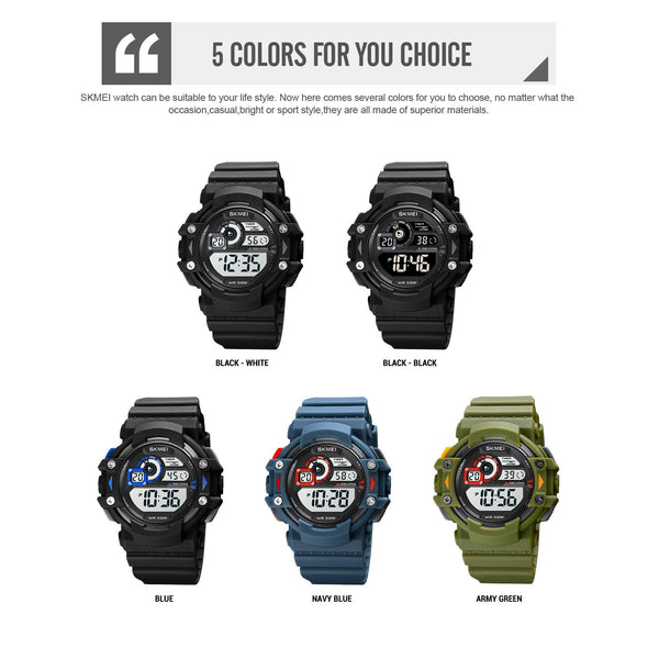 SKMEI 1778 Multifunction Dual Time Digital Display LED Luminous Men Sports Electronic Watch(Army Green)