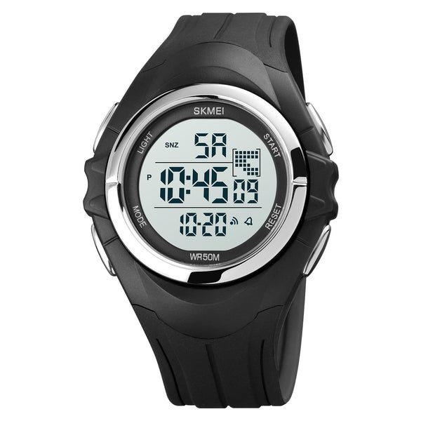 SKMEI 1790 Triplicate Round LED Dual Time Digital Display Luminous Electronic Watch for Men(Silver White)