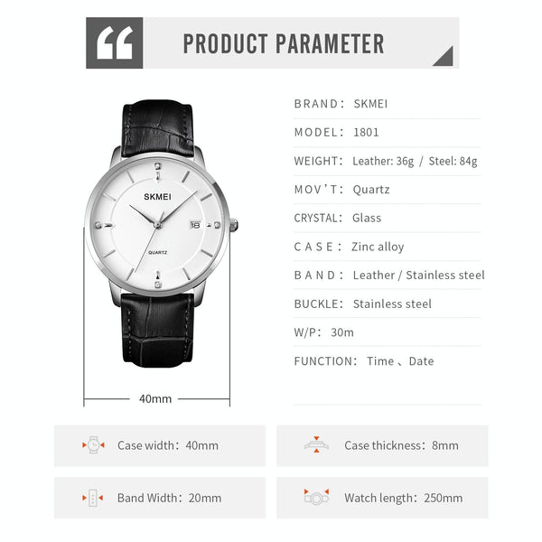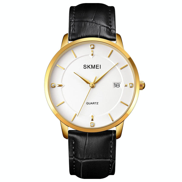 SKMEI 1801 Men Casual Calendar Quartz Watch(Gold and White)