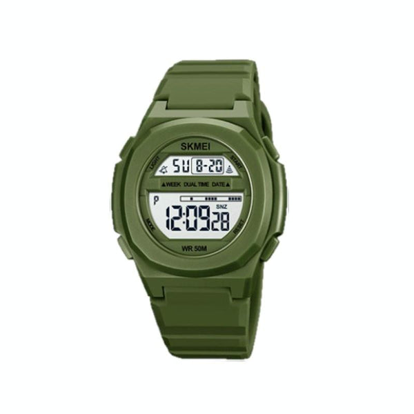 SKMEI 1821 Stainless Steel Buckle Silicone Strap Electronic Watch(Army Green)