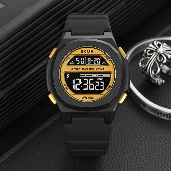 SKMEI 1821 Stainless Steel Buckle Silicone Strap Electronic Watch(Black Gold)