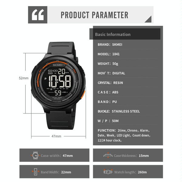 SKMEI 1841 Outdoor Sports Students Waterproof Luminous Countdown Watch(Black)