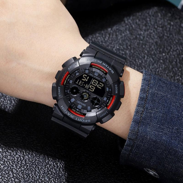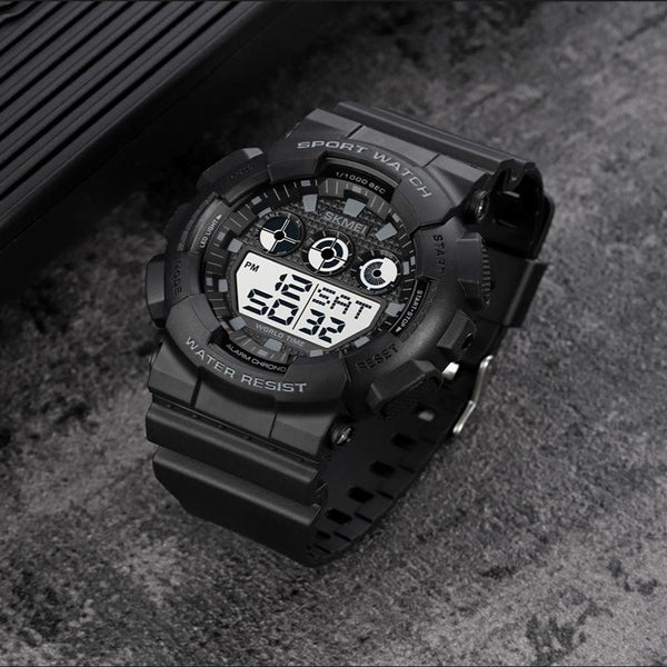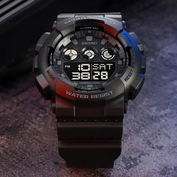 SKMEI 1857 Stainless Steel Buckle PU Strap Waterproof Electronic Watch(Black and Black)
