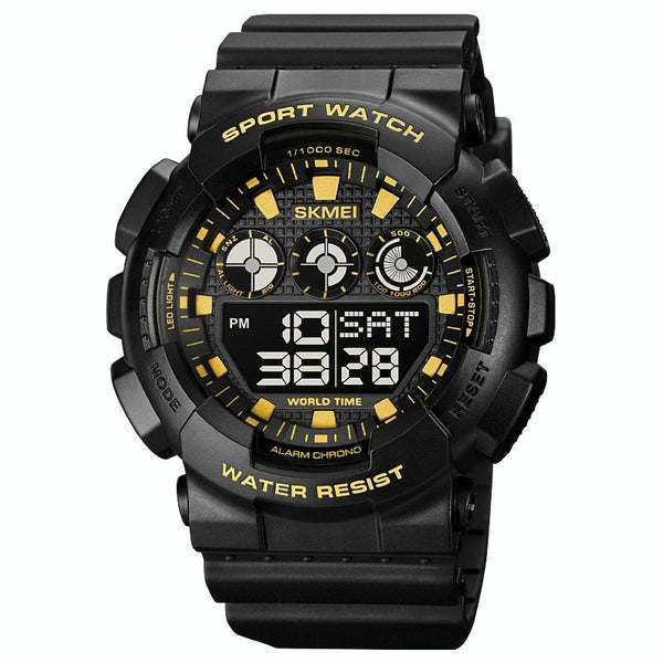 SKMEI 1857 Stainless Steel Buckle PU Strap Waterproof Electronic Watch(Black Gold)