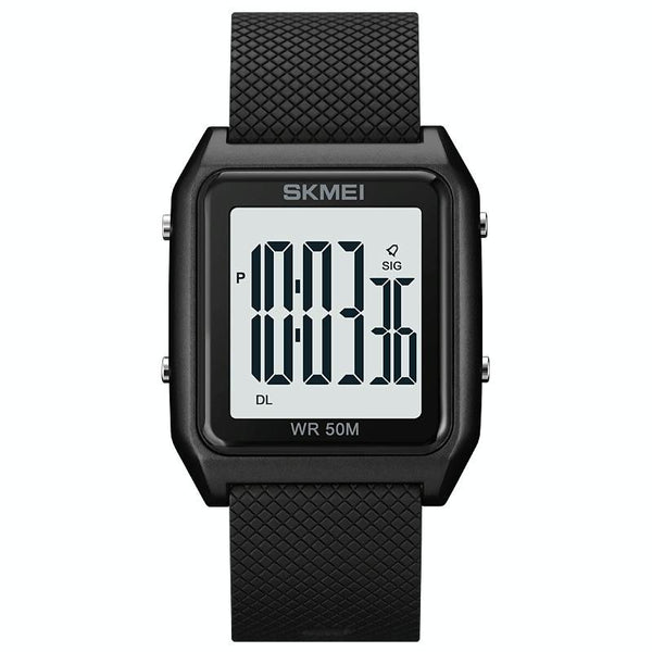 SKMEI 1866 Square Large Screen Men Steel Belt Multi-function Night Light Alarm Clock Watch(Black White Machine)