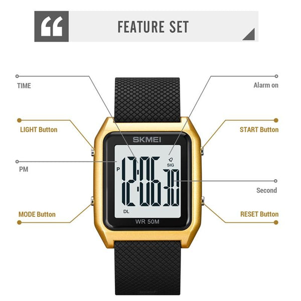 1. Functions: stopwatch timing, luminous, alarm clock, calendar, week, 12/24 hour format