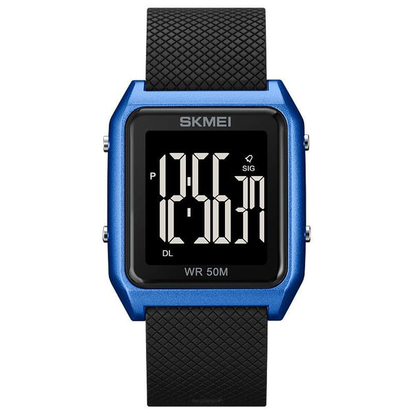 SKMEI 1866 Square Large Screen Men Steel Belt Multi-function Night Light Alarm Clock Watch(Blue Black Machine)