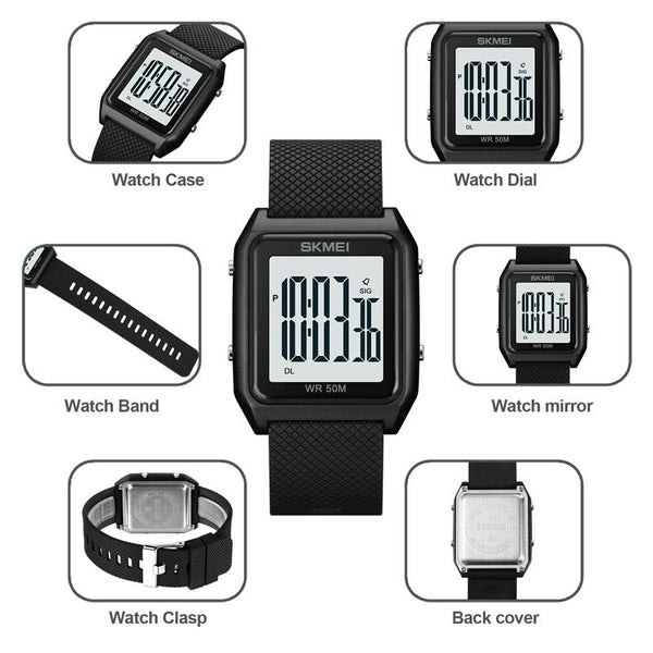 1. Functions: stopwatch timing, luminous, alarm clock, calendar, week, 12/24 hour format