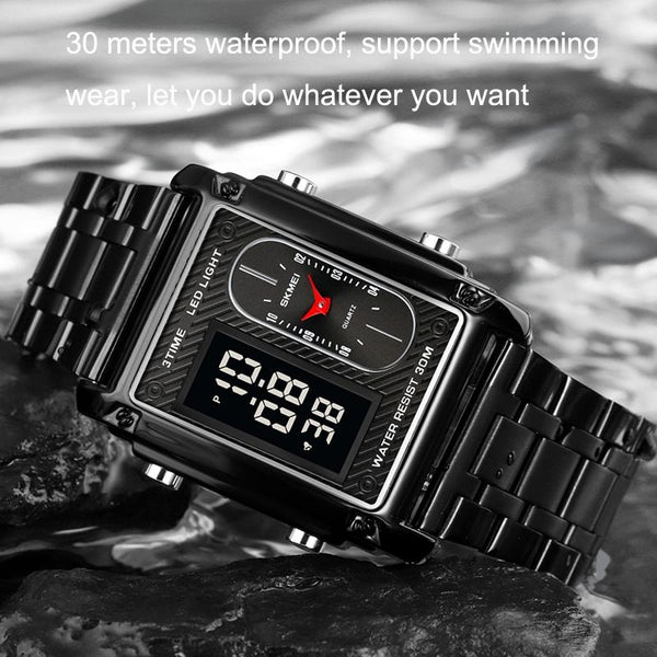 SKMEI 1868 Square Double Display Waterproof Men Watch, Style: Leather Belt (Rose Gold)