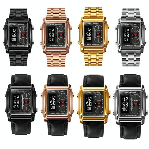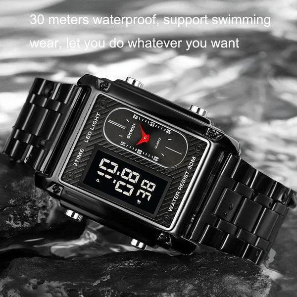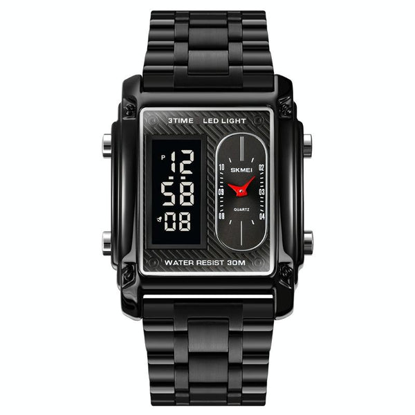 SKMEI 1868 Square Double Display Waterproof Men Watch, Style: Steel Belt (Black)