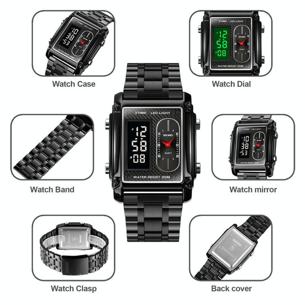 SKMEI 1868 Square Double Display Waterproof Men Watch, Style: Steel Belt (Rose Gold)